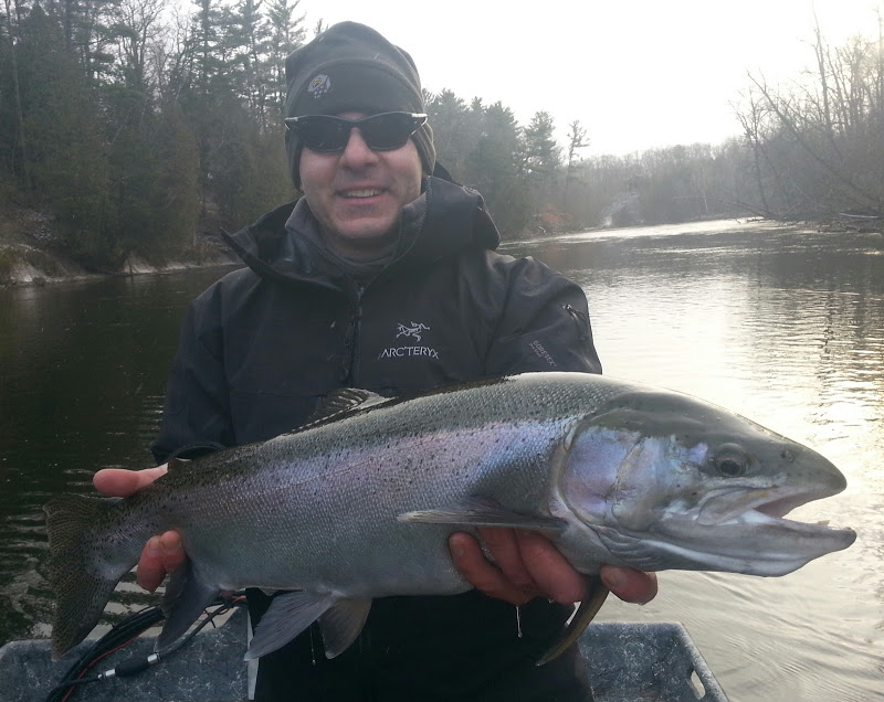 Jake with a monster birthday steelhead.